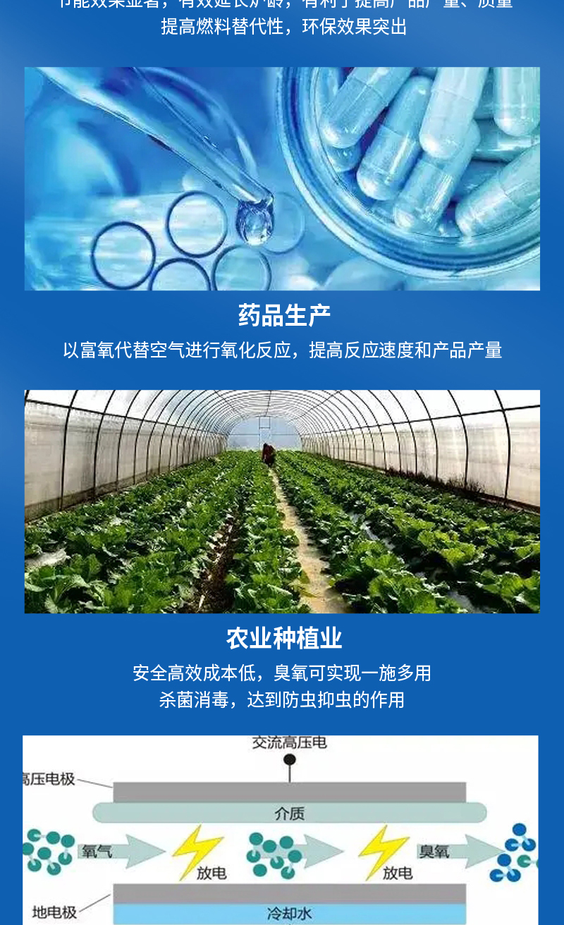 廣泛應用于工業(yè)、農(nóng)業(yè),藥品生產(chǎn),水處理,玻璃制造和臭氧制取