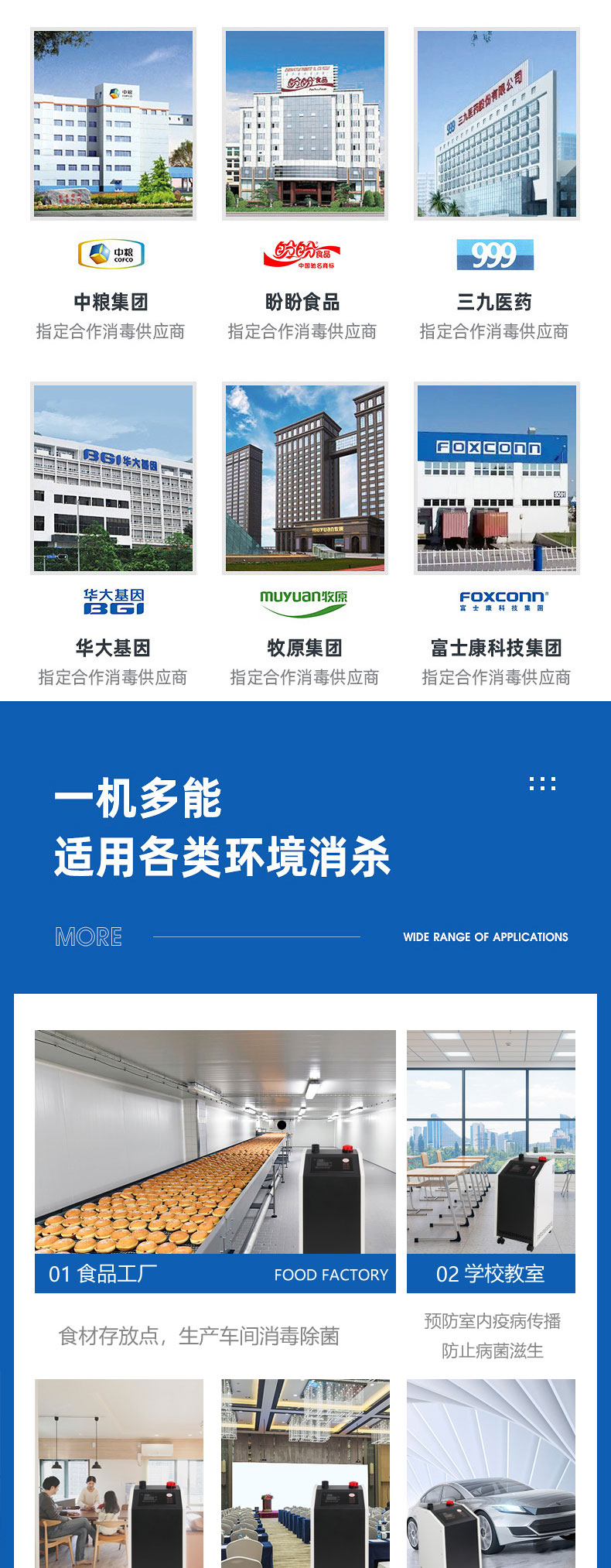 產(chǎn)品適用于對(duì)室內(nèi)環(huán)境空氣和特定作業(yè)空間的消毒凈化。如辦公室場(chǎng)所、醫(yī)院、學(xué)校、會(huì)議室、檔案室、娛樂(lè)場(chǎng)所賓館等:食品、飲料、醫(yī)藥等行業(yè)的生產(chǎn)車間、冷庫(kù)、更衣室和其他無(wú)HVAC潔凈區(qū)的空間消毒滅菌。