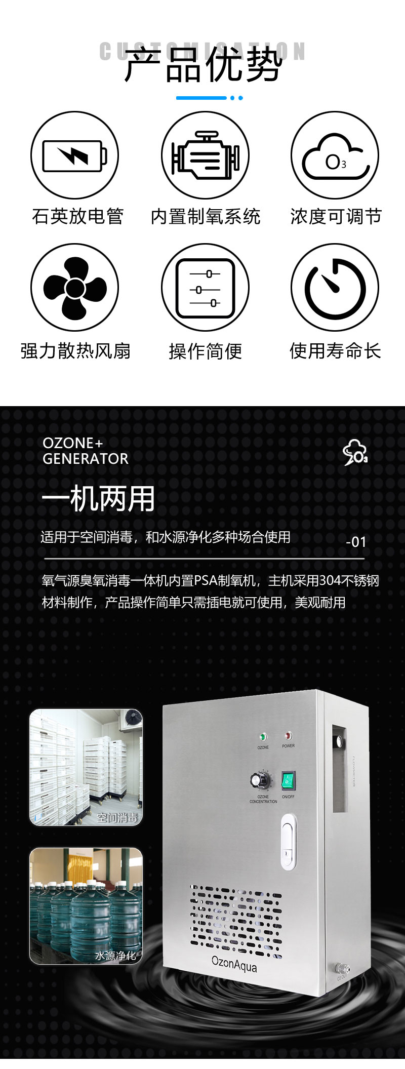 ◆氧氣源臭氧發(fā)生器空間消毒、水處理消毒一機(jī)多用