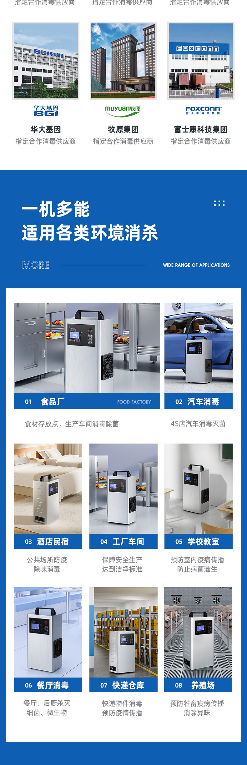 產(chǎn)品廣泛應(yīng)用于于:食品廠、化妝品廠、檔案室、冷庫、食堂、制藥廠、學(xué)校、賓館、酒店、醫(yī)院、餐廳,幼兒園,養(yǎng)殖場,家庭等空氣凈化消毒滅菌;同時廣泛用于礦泉水、食品飲料水、純凈水、超純水、游泳池水、養(yǎng)殖用水、醫(yī)療工業(yè)污水等水處理。