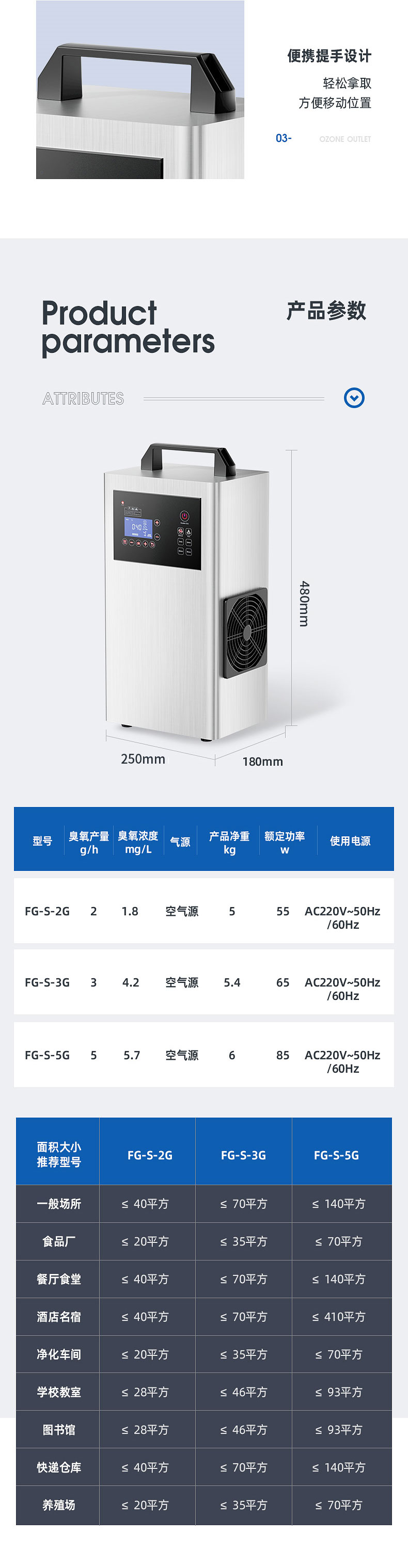 5. 臭氧放電管(2克除外)自身帶有散熱片,散熱更高效;